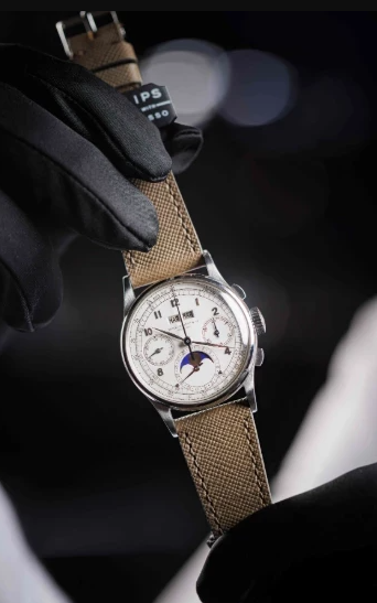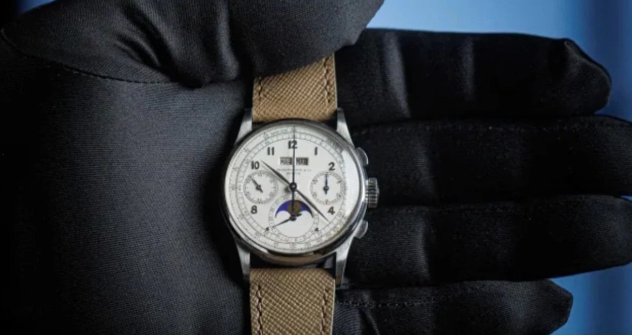 İsviçre’nin Cenevre kentinde düzenlenen açık artırmada Patek Philippe Perpetual Calendar Chronograph Reference 1518 modeli saat, 14.2 milyon İsviçre frangı (744 milyon TL) karşılığında satıldı.