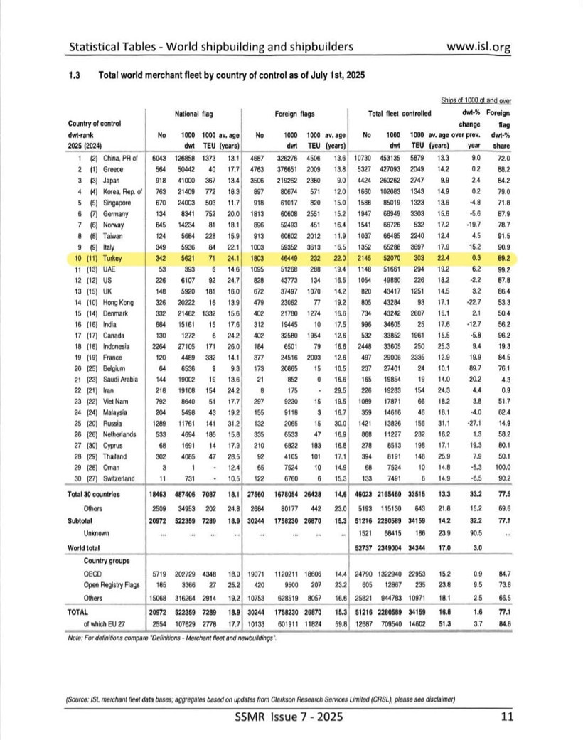 TİCARET FİLOSU DÜNYA SIRALAMASINDA 10. SIRAYA YÜKSELDİ